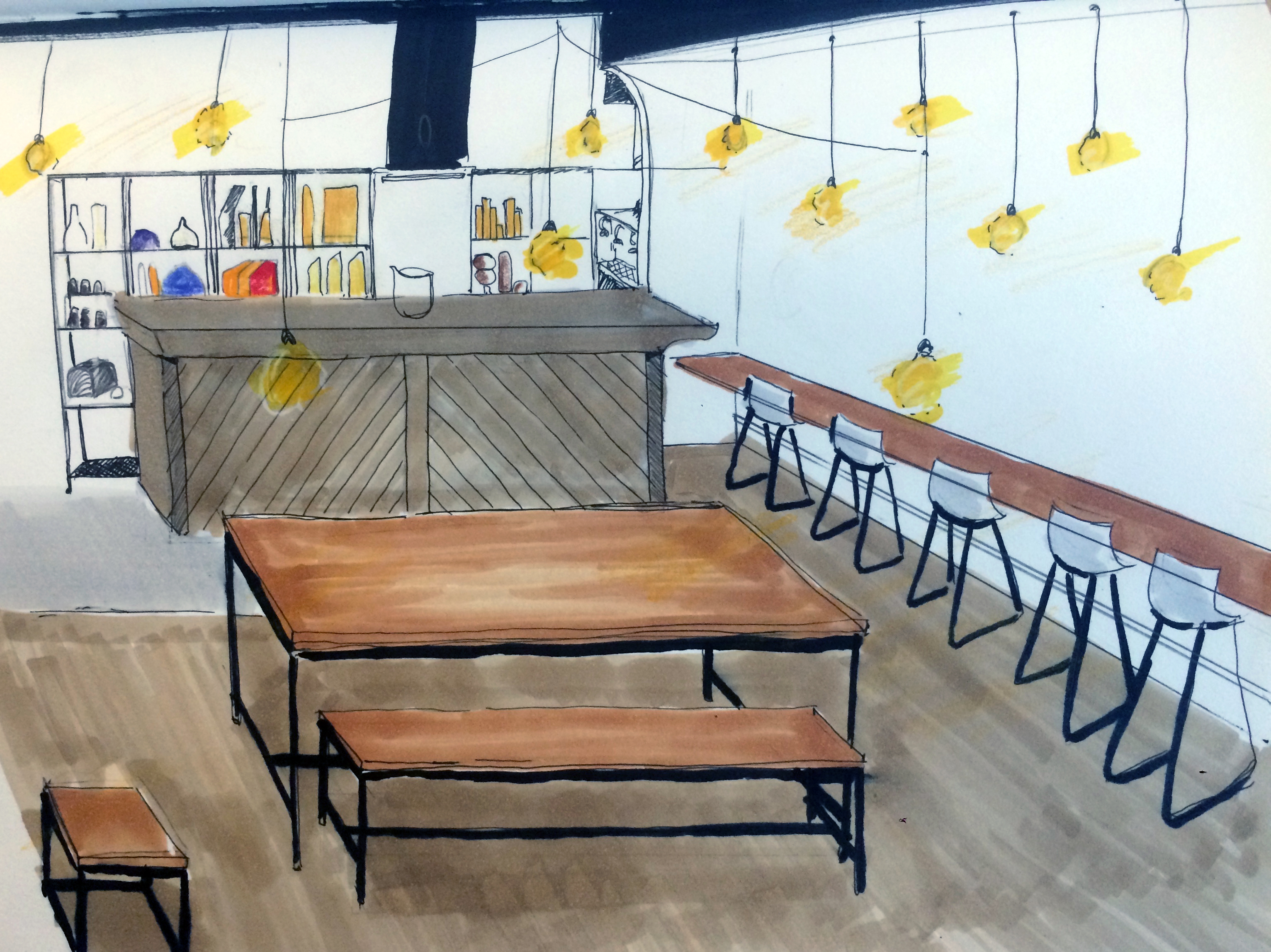 Mission d’architecture d’intérieur pour un Café coworking Chaleureux, Convivial & Collaboratif.